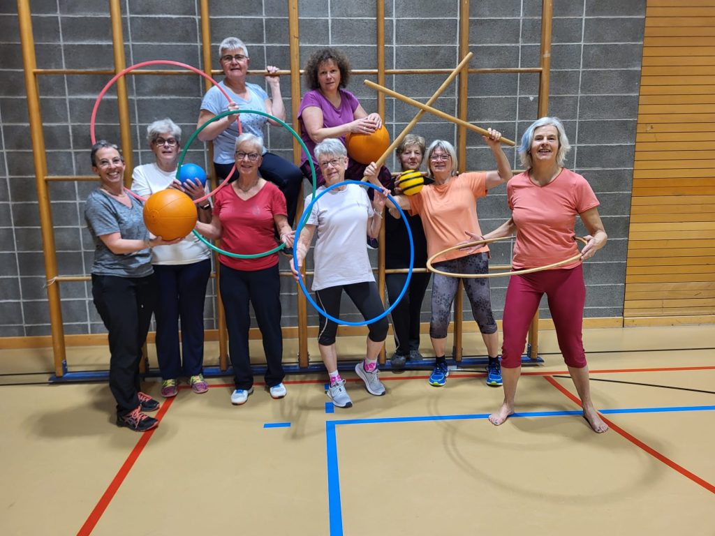 In unseren Turnstunden werden Kraft, Ausdauer und Koordination aufbauend trainiert und in verschiedenen Variationen im Ablauf eingebaut. Wir benützen dafür die verschiedensten Turn- und Handgeräte aus der Turnhalle, wie z. Bsp. Langbänke, Schwedenkasten, Sprossenwand, Seile, Theraband, Bälle, T-Bow, Brasils usw., alles begleitet mit Musik. Nebenbei fliessen auch spielerische Sequenzen mit ein. Wir bieten auch Yoga, Linedance, Wassergymnastik und vieles mehr, so dass wir viel Abwechslung und Fröhlichkeit bieten können.