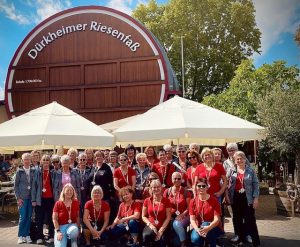 Jubiläumsweekend in Heidelberg 20.-22. August: ÄÄÄNDLICH – uf und drvo!! Mit einem Jahr Verspätung durften wir nun auf die Jubiläumsreise! Letztes Jahr wurde der FTV Möhlin 80 Jahre alt. Das will gefeiert werden und zwar 3 Tage –in HEIDELBERG. Am Freitag, 20.8. ging es dann endlich los. Es stiegen 28 aufgestellte, muntere und unternehmungslustige Frauen in den «Schwarb by Kaufmann» Car ein. Niki Scheuner hatte alle Hände voll zu tun um unsere Koffer zu versorgen. Er brachte uns sicher nach Heidelberg. Nach dem Zimmerbezug gab es eine Stadtrundfahrt. Der Stadtführer erzählte, dass Heidelberg 160’000 Einwohner zählt und zusätzlich 30’000 Studenten unterrichtet. Bereits 1386 wurde Heidelberg eine Universitätsstadt. Die grossen Campus lässt ahnen, dass es drinnen wohl heiss ist vom vielen Denken. Beim imposanten Schloss, wurde die Weitsicht über ganz Heidelberg genossen. Das Schloss mit dem grossen Weinfass konnten wir wegen Corona nicht besuchen, umso mehr freuten wir uns, dass der Programmpunkt «Apero» früher dran war. Der heimische Riesling ist wirklich gut. Das Nachtessen gab es im Hotel Schnookeloch, ein eindrückliches, historische Studentenbeiz aus dem Jahre 1920. Der Samstag stand ganz im Zeichen der Schifffahrt. Gemütlich ging es auf dem Neckar Richtung Neckarsteinach. Ein kleines schmuckes Städtchen. Die Sonne meinte es sehr gut mit uns – wolkenlos und sehr warm der ganze Tag. Den Abend verbrachten die meisten auf der Hotelterrasse. Beim Bettmümpfeli-Getränk wurde viel gelacht und erzählt. Am Sonntag nach dem Frühstück ging es auf die Rückfahrt. Einen längeren Halt gab es in der UNESCO-Weltkulturerbe-Stadt „Speyer“. Die Marktgasse voll von alten Riegelhäuser und vielen Kirchen. Niki brachte uns gesund zurück nach Möhlin- Vielen Dank.